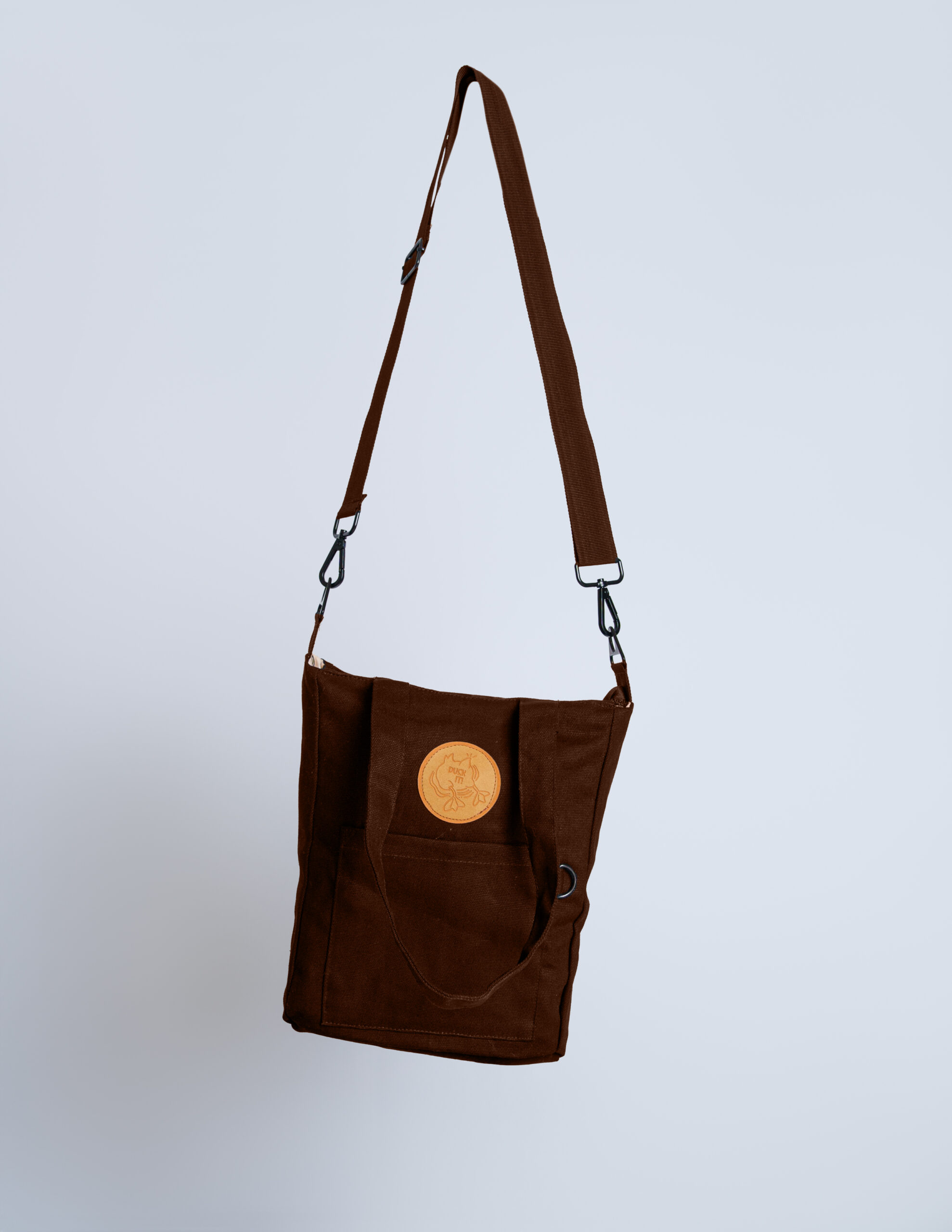 La Mini Tote Melanitta combina diseño y practicidad en un tamaño perfecto. Confeccionada en loneta café oscuro, un tono chic y atemporal que combina con todo.